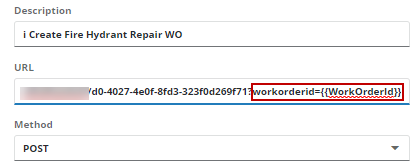 The URL can be configured to inject values (keywords) from Trimble Unity, such as a work order ID, directly into the destination URL.