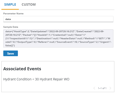 Use the Simple tab if you'd like to create a webhook that sends a message that an event has occurred in Trimble Unity to a third party.