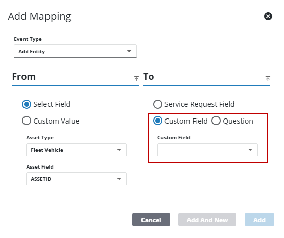 - Select the Service Request Field you'd like populated when assets are added to the service request.