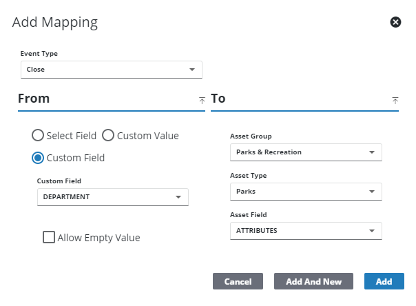 - Click Add to add the mapping or Add and New to add the mapping and to add a new one.