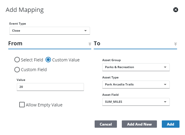 - Select Custom Value to enter a specific value that is written to the GIS.