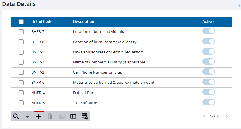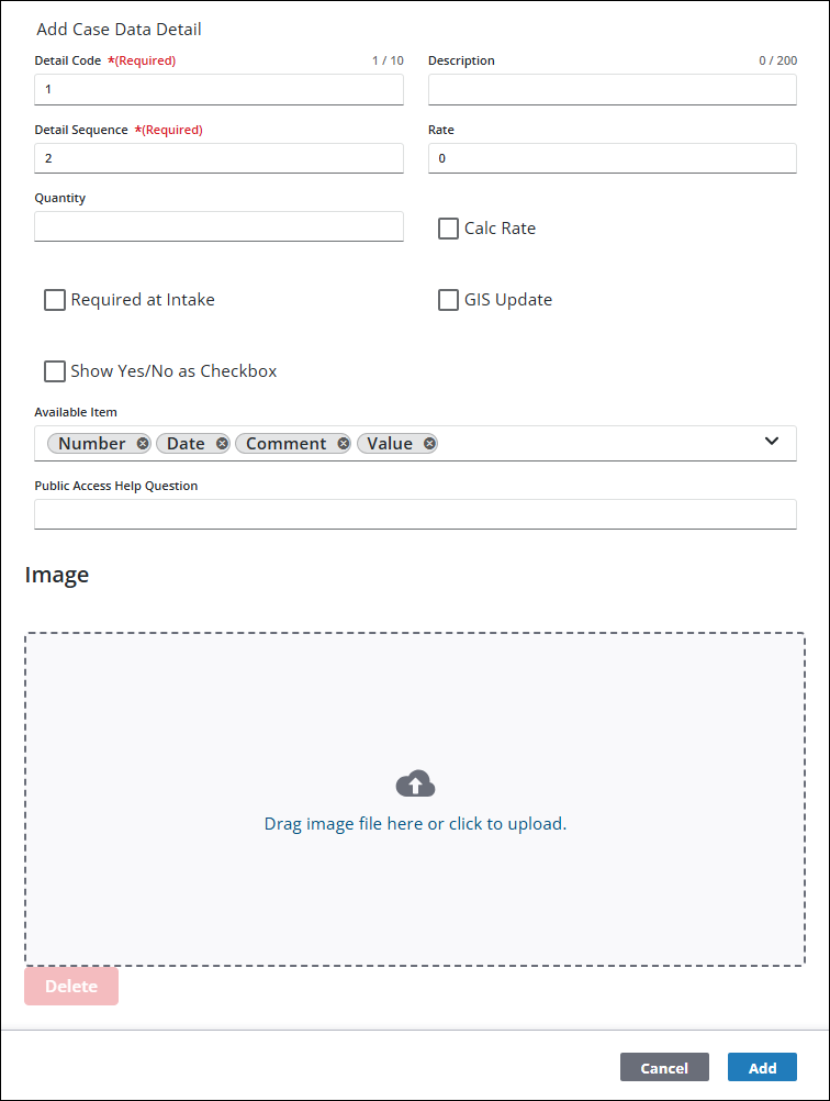 - In the Add Case Data Detail section, enter a code (10 characters maximum).