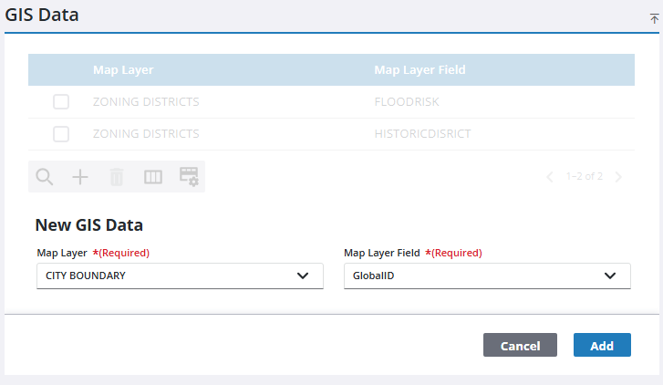 You can use map layers to display specific information from a map layer on a case's Summary page. For example, by selecting the PARCELS map layer and the OWNER_NAME field, you can make the name of the parcel owner appear on the Summary page of a case.