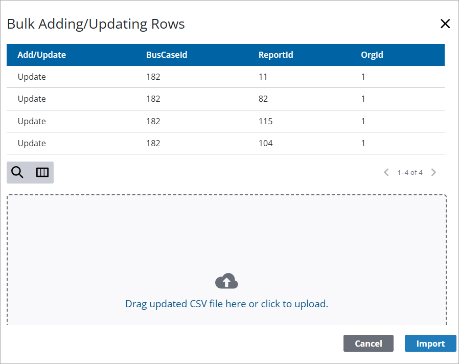 - Download the CSV file(s) that contains the appropriate rows and columns for the import you want to perform. See Bulk Export for more information.