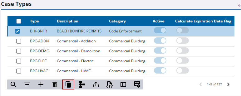 - On the Case Types panel, select the case type you want to clone and click Clone selected records.