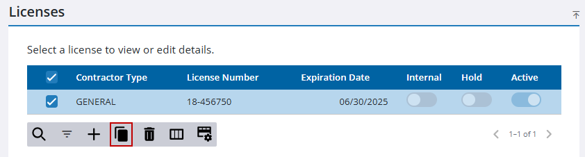 You can add contractor license based on an existing one by cloning the desired entry, then editing it to make it unique.
