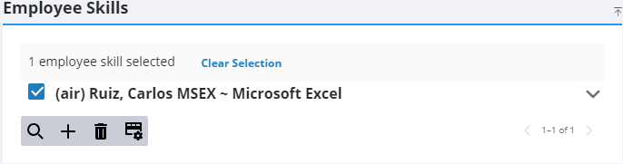 - In the Employee Skills panel, select the employee and click Delete selected records.