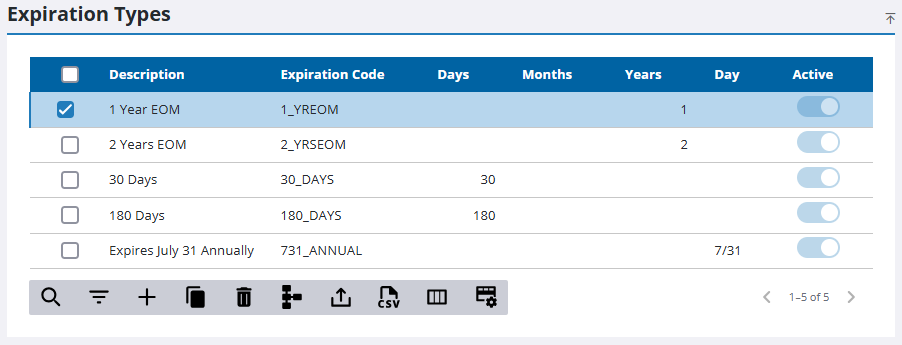 NOTE: Multiple expiration types can't be edited at once if some are active and some are inactive.
