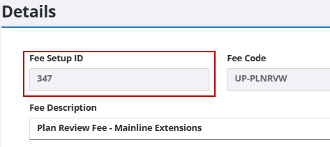 - When preparing to add new records to a table, remove the values from the SetupId column and the FeeSetupId column. Leave the SetupId column blank, and replace the values in the FeeSetupId column with the Fee Setup ID of the associated parent table. To obtain the Fee Setup ID of the parent table, download the Export Fee Setup CSV file and look at column A, which lists the parent table Fee Setup ID for every fee. You can also find the parent Fee Setup ID for any given fee on the Details panel after selecting that fee on the Fee Setup panel.