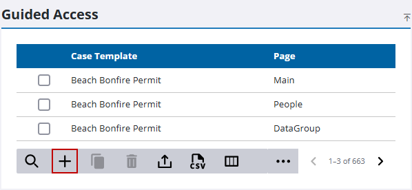 - On the Add Guided Access panel, use the Pages drop-down list to select the specific page of the case template the guided access appears on.