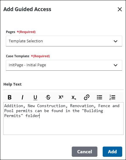 By adding guided access, administrators help to clarify and streamline the case creation process for end users in Public Access.