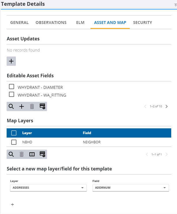 Editable Asset Fields allows you to assign editable asset fields to directly update GIS attribute information from Trimble Unity for the entities that apply to the inspection template. A user must be in a group that is given the Update permission under Inspections > Template Security to edit these fields.