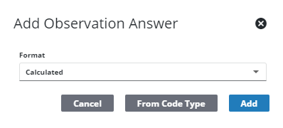 IMPORTANT: You must have at least two numeric answers created in order to add Calculated observation answers to an observation.