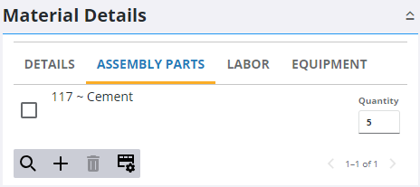 - To remove an assembly part, select the part and click Delete selected records.