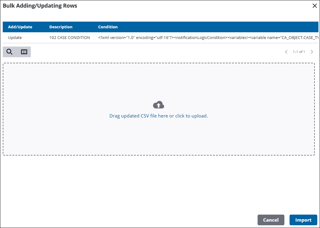 - Download the CSV file(s) that contains the appropriate rows and columns for the import you want to perform. See Bulk Export for more information.