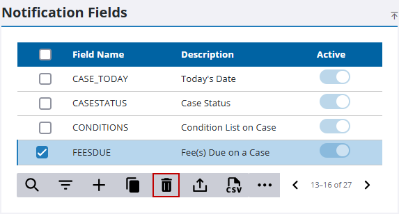 - Select the record you want to remove on the Notification Fields panel and click Delete selected records.