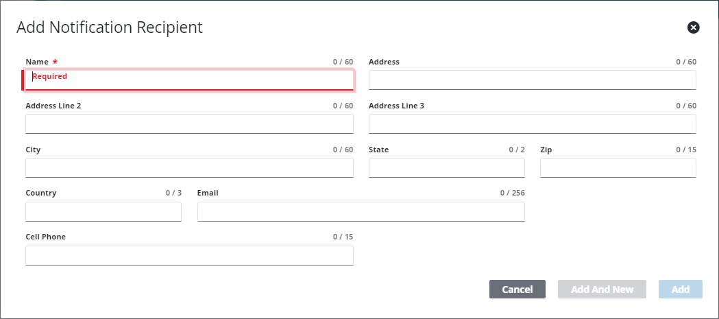 - Click Add to add a recipient or Add And New to add a recipient and create another one.