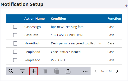 - On the Notification Setup panel, click Add record.
