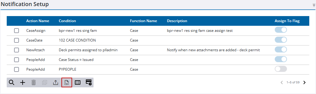 - Make a selection from the download option menu: Export Notification Setup, Export Notification Setup Type, Export Notification Setup People Role, Export Notification Setup Contractor Type, Export Notification Setup Recipients, Export Notification Setup Recipient Groups, or Export Notification Setup Employees.