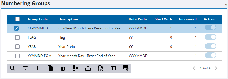 - Make any changes to the record on the Numbering Group Details panel.