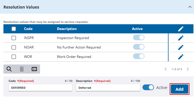- At the bottom of the Resolution Value section, enter the Code and Description.
