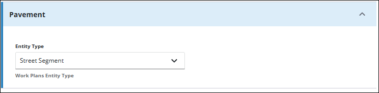- Select the Entity Type from the drop-down list that is used for road segments in Pavement.