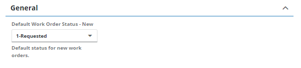 - In the Default Work Order Status - New field, select the default status for new work orders.