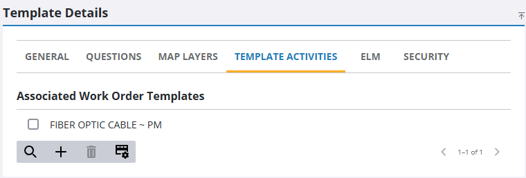 Work order templates that are already associated to the service request template are shown in the Associated Work Order Templates section.