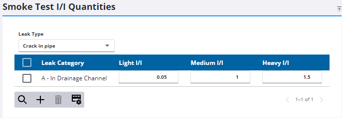 - To add a Leak Category, select the Leak Type and click Add record on the Smoke Test I/I Quantities panel.