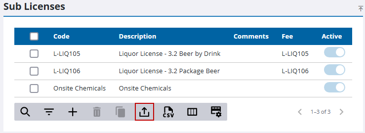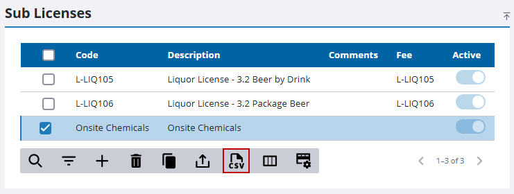 - On the Sub Licenses panel, select the entry or entries you want to export data for.