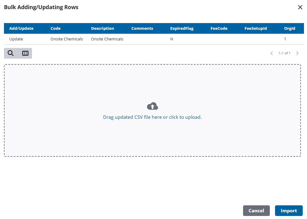 Multiple records can be exported or imported at once using CSV files. Bulk import actions can be used for adding new records and editing existing records.