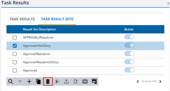 - On the Task Result Sets panel, select the task result set you want to deactivate.