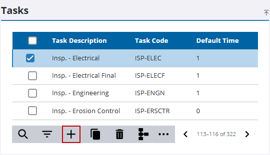 - On the Add Task panel, enter a 10-character (maximum) code in the Task Code field.