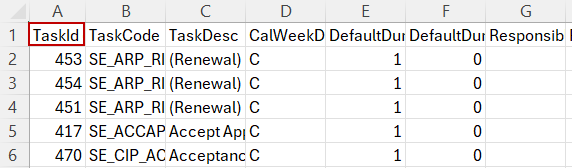 - When adding new entries, leave the TaskId field blank.