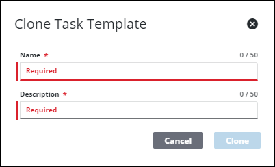 - Select the template you want to clone from the Task Templates panel and click Clone selected records.