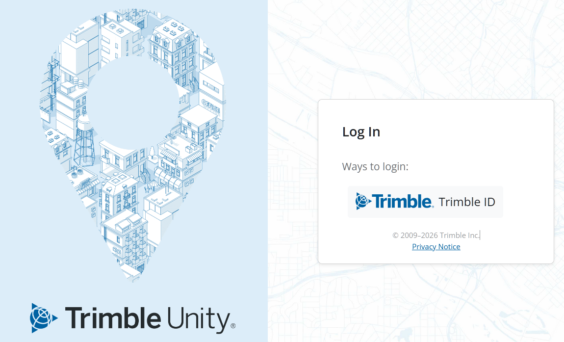 Once Trimble ID is turned on, the Trimble Unity login page looks like the following: Only Trimble ID Login Option