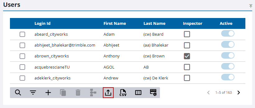 Multiple records can be exported or imported at once using CSV files. Bulk import actions can be used for adding new records and editing existing records.