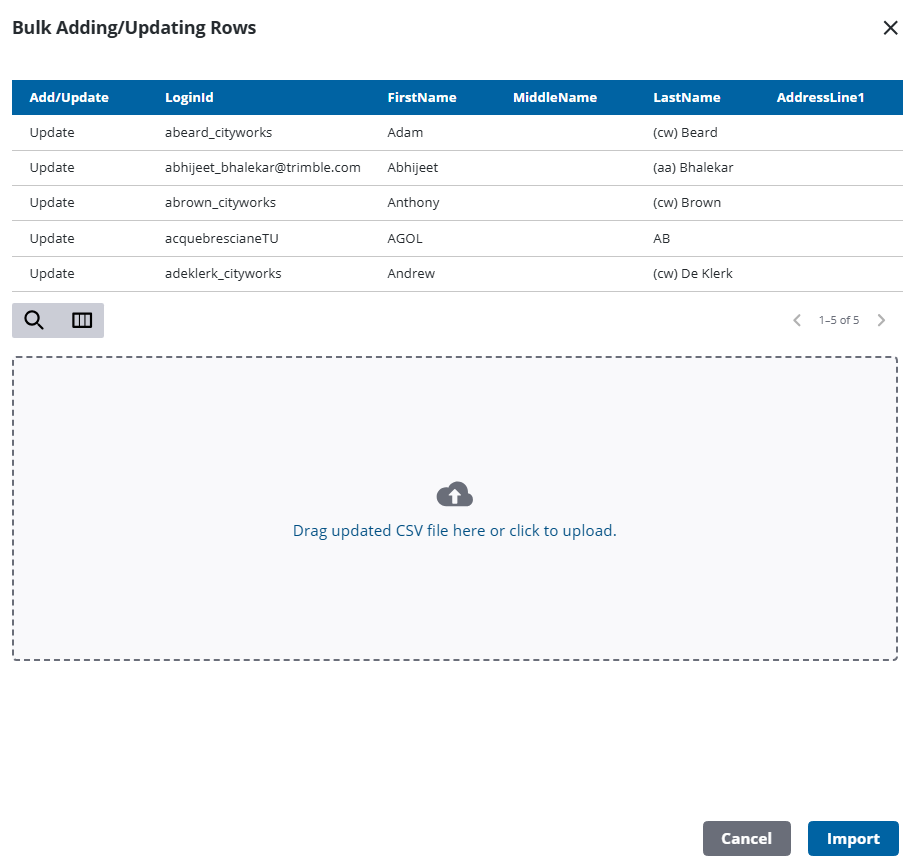 - Click Import CSV.