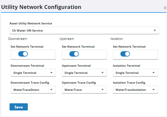 - Select the Asset Utility Network Service that is associated with the asset type. Only the utility network layers associated with the asset type appears in this drop-down list.