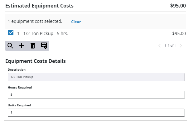 - If you select a piece of equipment unrelated to a contractor, enter the number of Hours Required and Units Required for the template in the Estimated Equipment Cost Details section.