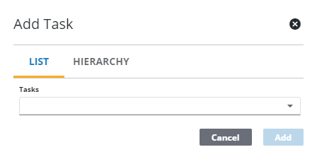 The List tab lists all the tasks and can be filtered by typing the first few letters of the tasks in the search box at the top. The Hierarchy tab displays all of the tasks in a hierarchy view.