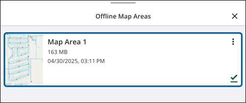 After an offline map area is downloaded, the card displays the file size and the date it was last updated and you can access the More Actions menu.