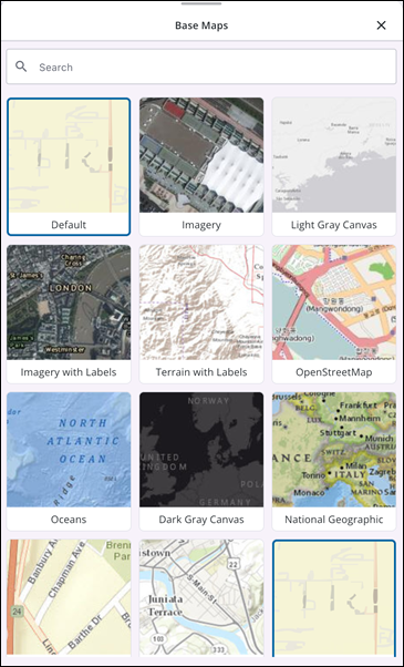 • You must be connected to the internet to switch base maps. For offline map area use, see Offline Map Areas.