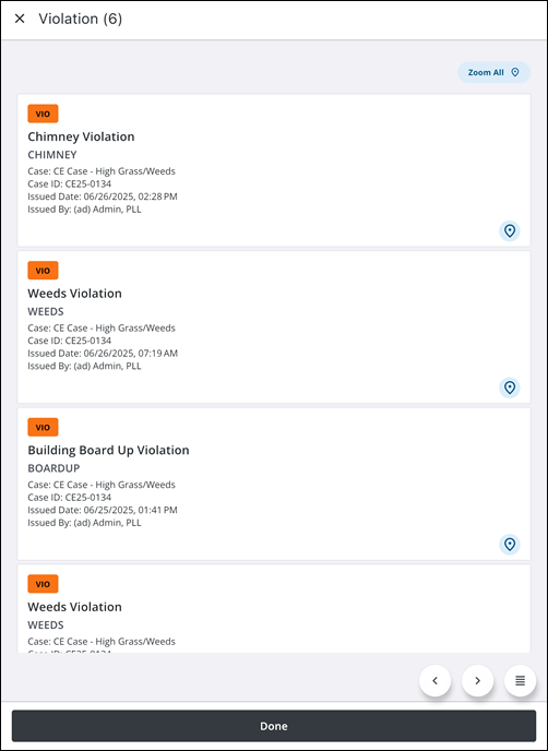 The Violation page opens. The number in parentheses displays the number of violations associated to the case.