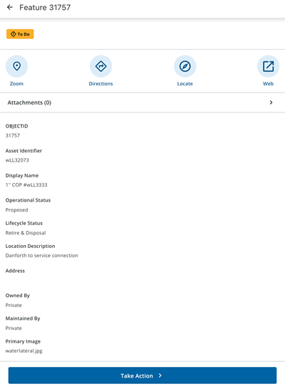 - Directions: Tap to get directions to the associated asset. See Go To Work Location for more information.