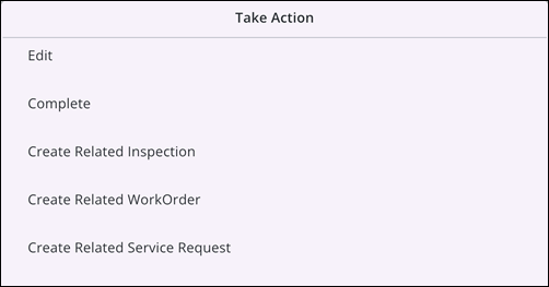 - Create Related Activity: Tap to create a new inspection, work order, or service request for the asset.