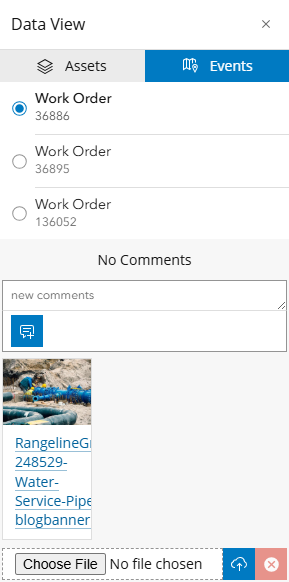 The Events tab populates with any comments and/or attachments associated to the selected work activity, project, or contract.