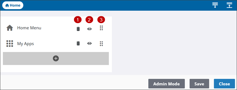 2. Click the view icon to hide the item from the menu. Click the disabled view icon to show the item in the menu.