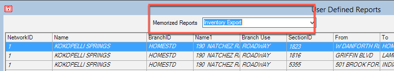 - Select Inventory Export from the Memorized Reports drop-down list.
