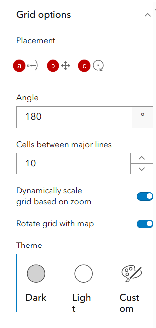 - Rotate grid with map: Turn on to automatically rotate the grid when the map is rotated.